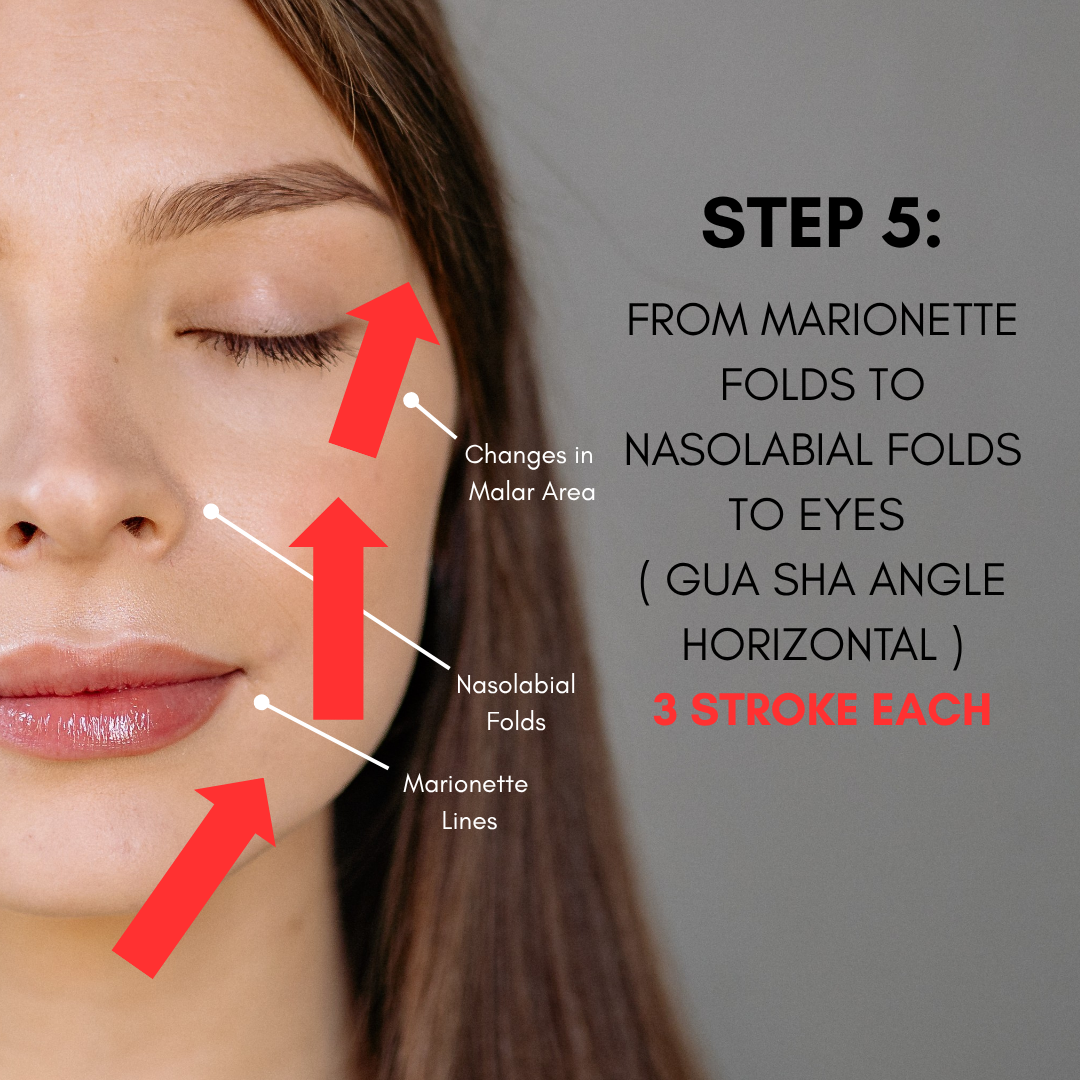 - Glide the gua sha comb gently upward and outward along the face, neck, or scalp.